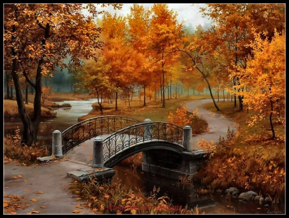 Autumn Scenic Bridge Counted Cross Stitch Kits Diy Handmade Needlework For Embroidery 14 Ct Cross Stitch Sets Dmc Color Aliexpress Home Garden